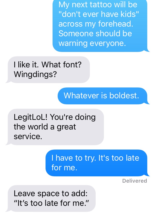 Here is what I am infinitely grateful for: I have many close friends who freely and loudly admit that parenting is terrible. That kids are sometimes just the worst and that we had no idea what we were really getting into when we had them. Being a parent (and particularly a mother) and saying to people, yeah, parenting SUCKS is still not really acceptable. I am supposed to find it rewarding. I am supposed to be endlessly patient and just so naturally maternal and giving and selfless. I am supposed to like this.