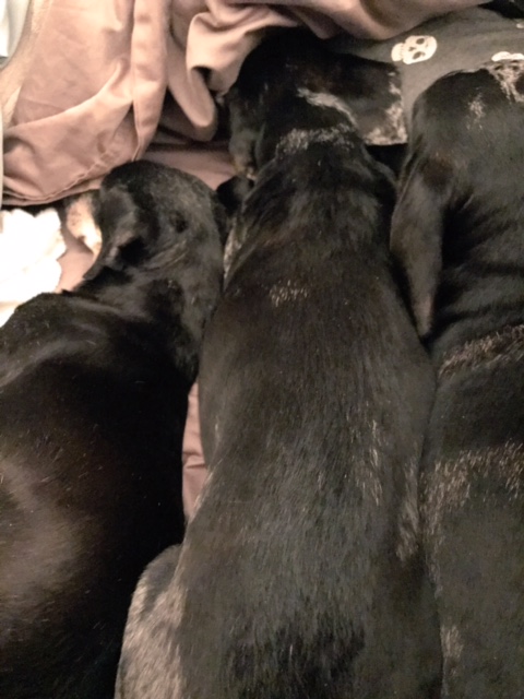 I’m conflicted: I wish we knew his past, because it would help us help him. But, at the same time, I am so glad I don’t know the details. We’re helping him rewrite his story, but it’s slow going. Despite whatever he’s been through, he is still so full of love. He seems happy to have dog brothers, a loving family, and plenty of attention. He’s in an entirely new situation, but his past never appears to be very far from his mind. Whenever he freaks out, we just remind ourselves that he has seen some shit. He has his reasons for lashing out, for distrusting, for being fearful. I wish we had been the ones to have him all along. But he found his way here, finally. And maybe, just maybe, some night Matthew will be able to get Oscar up without fleeing down the stairs as a toothless tiny dog races after him, screaming at him to get away from his mommy.