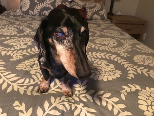 The timing of being home so much turned out to be great. As anyone who follows me on social media knows, one of our dogs suddenly went blind last month. For a handful of days, the sides of Edward’s eyes just looked irritated and red. Not the biggest deal–dogs always have all kinds of strange things going on, especially old dogs. Maybe it’s allergies, I said. Maybe he’s allergic to dogs.