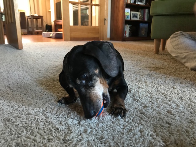 Our vet says that beyond his ailing brain, his health is great. She says he is a little energizer bunny and will keep going. He’s a tough little dog. Edward and Billy clearly come from very healthy dogs. Our vet also recently said he will not be surprised if Edward is the rare dachshund to make it to 20.