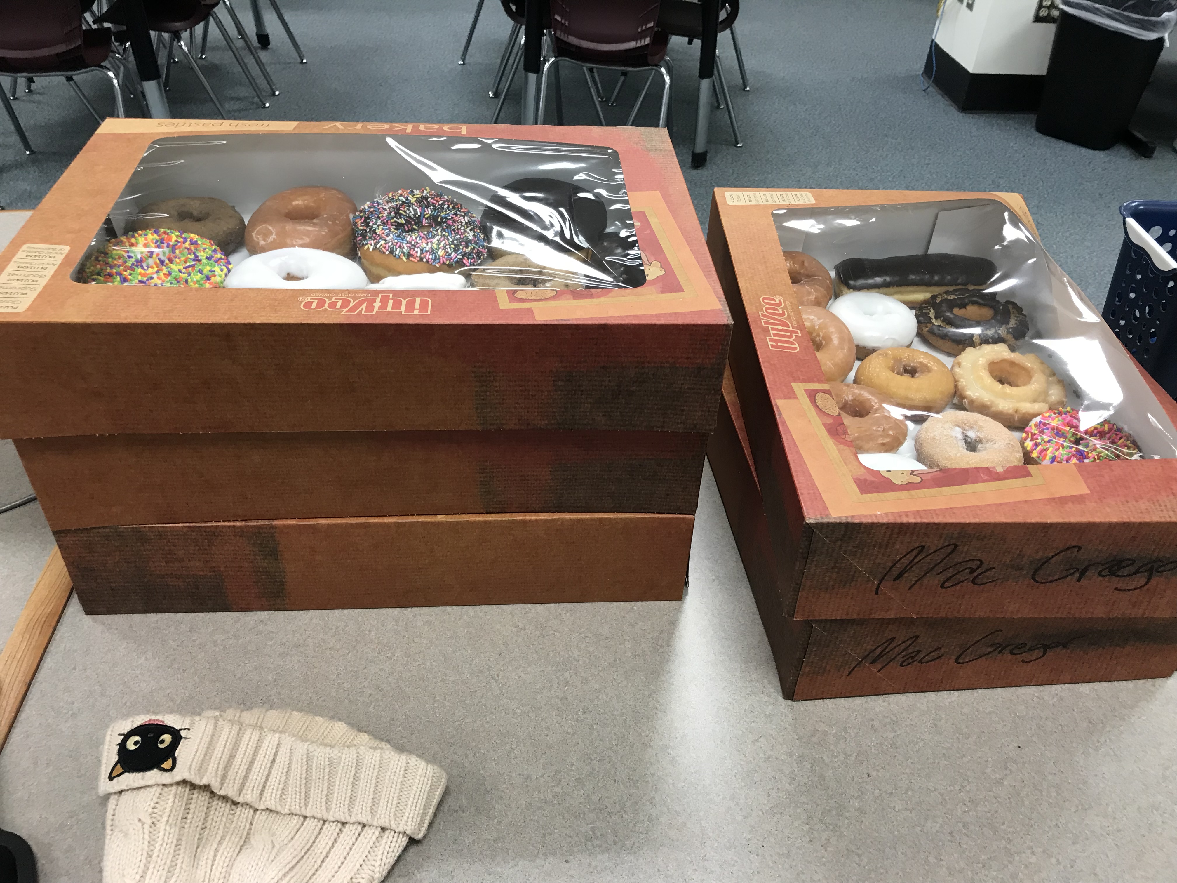 But I made it through driving on the first really bad roads of the season. And I started the day with $50 worth of donuts on my desk. And I will do this over and over and over, this winter and every future winter, likely not with the support of so many donuts, but I will never not get in my car on a snowy day and think of what happened to my dad. The world is a random, dumb, unfair, ridiculous place. Drive carefully out there.