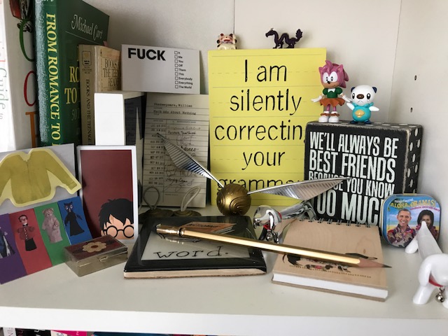 Over spring break, I read 83 BUFFY comics (the television show ended with season 7, but the comics continue the story, and I’m up to season 11, the current season). We have a BUFFY calendar in our kitchen. We’re listening to the podcast about the show, BUFFERING THE VAMPIRE SLAYER. I’m reading other books about the show. It’s almost all we talk about. I wrote an entire first draft of a new novel over 8 weeks and it’s fair to say that BUFFY totally fueled my writing and my state of mind.
